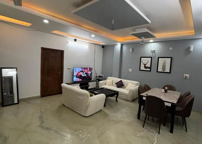 Ce site dispose d'une cafetière/théière ainsi que d'une cuisine avec un micro-ondes, un réfrigérateur et de la vaisselle. L'aéroport Delhi International est atteignable à 15 km.